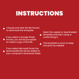However, we recommend being cautious when deleting columns or rows, as this could disrupt the formulas and cause issues within the template.