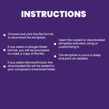 However, we recommend being cautious when deleting columns or rows, as this could disrupt the formulas and cause issues within the template.